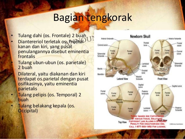 25 01 2022 · Tulang tengkorak merupakan sekumpulan tulang yang saling bersatu untuk membentuk struktur kepala dan juga wajah Tulang tengkorak juga bertugas sebagai pelindung bagi otak agar tidak mengalami cedera saat terbentur Tulang tengkorak sendiri dibagi ke dalam beberapa jenis yakni tulang kepala atau kranium dan tulang wajah